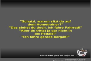 | Schatzi, warum sitzt du auf dem Hometrainer? Bild (27.37 KB)  2Lustiges → klasse Sprüche und Witze  | Lustiges → klasse Sprüche und Witze | 31.08.24-10:42 | Fossy | |