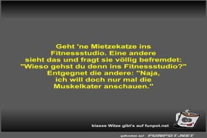 | Geht 'ne Mietzekatze ins Fitnessstudio Bild (32.79 KB)  3Lustiges → klasse Sprüche und Witze  | Lustiges → klasse Sprüche und Witze | 29.08.24-12:03 | Fossy | |