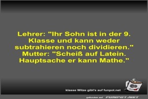 | Lehrer: Ihr Sohn ist in der 9 Bild (31.65 KB)  5Lustiges → klasse Sprüche und Witze  | Lustiges → klasse Sprüche und Witze | 28.08.24-17:00 | Fossy | |