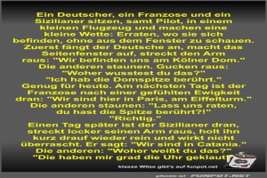 | Ein Deutscher, ein Franzose und ein Sizilianer sitzen, samt Bild (103.8 KB)  3Lustiges → klasse Sprüche und Witze  | Lustiges → klasse Sprüche und Witze | 31.08.24-12:54 | Fossy | |