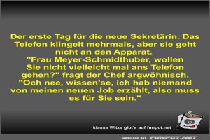 | Der erste Tag für die neue Sekretärin Bild (47.24 KB)  1Lustiges → klasse Sprüche und Witze  | Lustiges → klasse Sprüche und Witze | 30.08.24-18:18 | Fossy | |