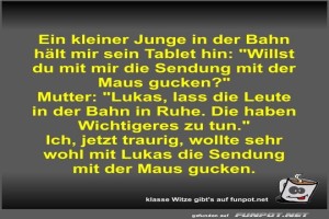 | Ein kleiner Junge in der Bahn hält mir sein Tablet hin Bild (50.35 KB)  2Lustiges → klasse Sprüche und Witze  | Lustiges → klasse Sprüche und Witze | 26.08.24-11:18 | Fossy | |