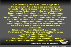 | Am Anfang der Klausur sagt der Professor Bild (78.1 KB)  3Lustiges → klasse Sprüche und Witze  | Lustiges → klasse Sprüche und Witze | 28.08.24-12:00 | Fossy | |