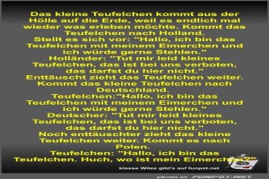 | Das kleine Teufelchen kommt aus der Hölle auf die Erde Bild (98.88 KB)  2Lustiges → klasse Sprüche und Witze  | Lustiges → klasse Sprüche und Witze | 27.08.24-10:10 | Fossy | |