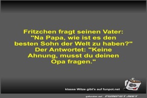 | Fritzchen fragt seinen Vater Bild (31.95 KB) 2Lustiges → klasse Sprüche und Witze | Lustiges → klasse Sprüche und Witze | 16.08.24-12:54 | Fossy | |