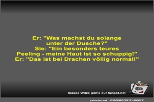 | Er: Was machst du solange unter der Dusche? Bild (27.15 KB) 3Lustiges → klasse Sprüche und Witze | Lustiges → klasse Sprüche und Witze | 17.08.24-11:03 | Fossy | |