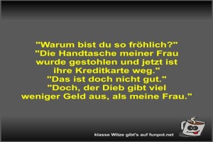 | Warum bist du so fröhlich? Bild (36.15 KB) 3Lustiges → klasse Sprüche und Witze | Lustiges → klasse Sprüche und Witze | 31.08.-19:32 | Fossy | |