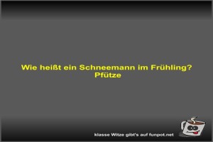 | Wie heißt ein Schneemann im Frühling? Bild (14.66 KB) 3Lustiges → klasse Sprüche und Witze | Lustiges → klasse Sprüche und Witze | 03.09.-12:00 | Fossy | |