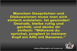 | Manchen Gesprächen und Diskussionen muss man sich einfach... Bild (44.73 KB) 2Lustiges → klasse Sprüche und Witze | Lustiges → klasse Sprüche und Witze | 03.09.-16:58 | Fossy | |
