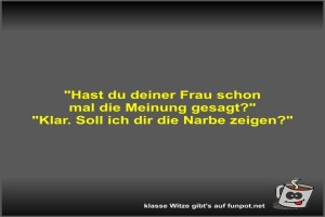 | Hast du deiner Frau schon mal die Meinung gesagt? Bild (21.3 KB) 1Lustiges → klasse Sprüche und Witze | Lustiges → klasse Sprüche und Witze | 31.08.-15:11 | Fossy | |