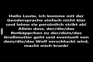 | Rotkäppchen im Gender-Dschungel Bild (102.22 KB) 1Lustiges → klasse Sprüche und Witze | Lustiges → klasse Sprüche und Witze | 31.08.-13:51 | Cecilia | |