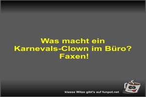 | Was macht ein Karnevals-Clown im Büro? Bild (19.5 KB) 1Lustiges → klasse Sprüche und Witze | Lustiges → klasse Sprüche und Witze | 01.09.-14:39 | Fossy | |