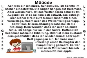 | Müüüde Bild (144.15 KB) 39Lustiges → klasse Sprüche und Witze Zum Thema müde kann ich ein Lied singen. Und das derzeitige Wetter macht es nicht besser ;-) | Lustiges → klasse Sprüche und Witze | 23.07.24-22:34 | lucky | |