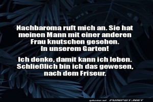 | Die Nachbaroma Bild (93.36 KB) 2Lustiges → klasse Sprüche und Witze | Lustiges → klasse Sprüche und Witze | 23.07.24-09:20 | Eslem65 | |