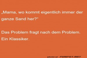 | Wo kommt der ganze Sand her? Bild (36.1 KB) 2Lustiges → klasse Sprüche und Witze | Lustiges → klasse Sprüche und Witze | 23.07.24-09:19 | ||