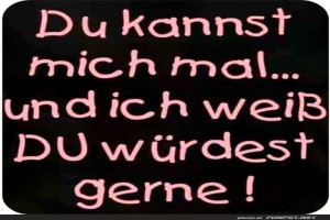 | Du kannst mich mal Bild (78.62 KB) 1Lustiges → klasse Sprüche und Witze | Lustiges → klasse Sprüche und Witze | 22.07.24-14:01 | Mathilda | |