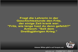 | Fragt die Lehrerin in der Geschichtsstunde den Fritz Bild (28.51 KB) 2Lustiges → klasse Sprüche und Witze | Lustiges → klasse Sprüche und Witze | 20.07.24-16:34 | Fossy | |