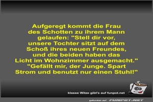 | Aufgeregt kommt die Frau des Schotten zu ihrem Mann gelaufen Bild (43.59 KB) 1Lustiges → klasse Sprüche und Witze | Lustiges → klasse Sprüche und Witze | 05.07.24-13:40 | Fossy | |