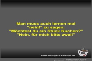 | Man muss auch lernen mal "nein!" zu sagen Bild (25.05 KB) 6Lustiges → klasse Sprüche und Witze | Lustiges → klasse Sprüche und Witze | 06.07.24-14:04 | Fossy | |