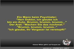 | Ein Mann beim Psychiater Bild (31.5 KB) 3Lustiges → klasse Sprüche und Witze | Lustiges → klasse Sprüche und Witze | 06.07.24-11:03 | Fossy | |