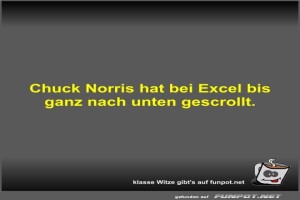 | Chuck Norris hat bei Excel bis ganz nach unten gescrollt Bild (19.69 KB) 1Lustiges → klasse Sprüche und Witze | Lustiges → klasse Sprüche und Witze | 03.07.24-15:00 | Fossy | |