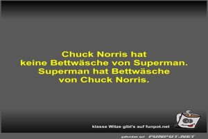 | Chuck Norris hat keine Bettwäsche von Superman Bild (23.59 KB) 1Lustiges → klasse Sprüche und Witze | Lustiges → klasse Sprüche und Witze | 04.07.24-13:18 | Fossy | |