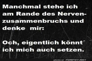 | Nervenzusammenbruch Bild (80.73 KB) 2Lustiges → klasse Sprüche und Witze | Lustiges → klasse Sprüche und Witze | 26.06.24-13:30 | ||