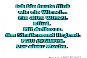 | Flink wie ein Wiesel Bild (78.01 KB) 2Lustiges → klasse Sprüche und Witze | Lustiges → klasse Sprüche und Witze | 27.06.24-08:09 | ||