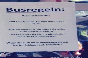 | Bus-Regeln Bild (41.99 KB) 2Lustiges → klasse Sprüche und Witze | Lustiges → klasse Sprüche und Witze | 23.06.24-17:58 | Mareike-43 | |