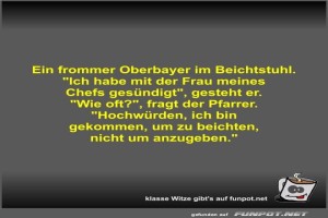 | Ein frommer Oberbayer im Beichtstuhl Bild (33.08 KB) von Fossy am 23. Juni 2024 um 13:14 Uhr Lustiges → klasse Sprüche und Witze | Lustiges → klasse Sprüche und Witze | 23.06.24-13:14 | Fossy | ||