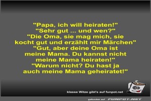 | "Papa, ich will heiraten!" Bild (41.33 KB) 2Lustiges → klasse Sprüche und Witze | Lustiges → klasse Sprüche und Witze | 23.06.24-17:49 | Fossy | |