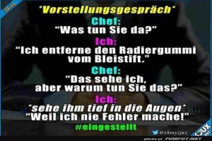 | Vorstellungsgespräch Bild (95.03 KB) 4Lustiges → klasse Sprüche und Witze | Lustiges → klasse Sprüche und Witze | 19.06.24-10:48 | ||
