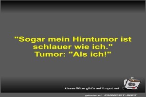 | Sogar mein Hirntumor ist schlauer wie ich Bild (21.82 KB) 2Lustiges → klasse Sprüche und Witze | Lustiges → klasse Sprüche und Witze | 18.06.24-16:35 | Fossy | |