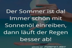 | Der Sommer ist da Bild (27.33 KB) 3Lustiges → klasse Sprüche und Witze | Lustiges → klasse Sprüche und Witze | 19.06.24-09:31 | Mathilda | |