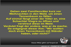 | Gehen zwei Familienväter kurz vor Weihnachten in den Wald Bild (47.67 KB) 1Lustiges → klasse Sprüche und Witze | Lustiges → klasse Sprüche und Witze | 18.06.24-13:11 | Fossy | |