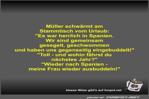 | Müller schwärmt am Stammtisch vom Urlaub Bild (35.11 KB) 5Lustiges → klasse Sprüche und Witze | Lustiges → klasse Sprüche und Witze | 07.06.24-15:35 | Fossy | |