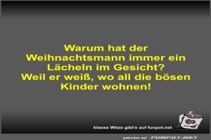 | Warum hat der Weihnachtsmann immer ein Lächeln im Gesicht? Bild (28.43 KB) 3Lustiges → klasse Sprüche und Witze | Lustiges → klasse Sprüche und Witze | 03.06.24-17:52 | Fossy | |
