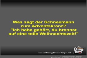 | Was sagt der Schneemann zum Adventskranz? Bild (27.65 KB) von Fossy am 01. Juni 2024 um 16:28 Uhr Lustiges → klasse Sprüche und Witze | Lustiges → klasse Sprüche und Witze | 01.06.24-16:28 | Fossy | ||