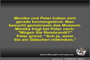 | Monika und Peter haben sich gerade kennengelernt Bild (37.57 KB) 4Lustiges → klasse Sprüche und Witze | Lustiges → klasse Sprüche und Witze | 01.06.24-09:27 | Fossy | |