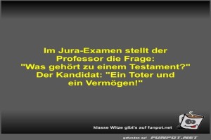 | Im Jura-Examen stellt der Professor die Frage Bild (26.61 KB) 4Lustiges → klasse Sprüche und Witze | Lustiges → klasse Sprüche und Witze | 31.05.24-11:02 | Fossy | |