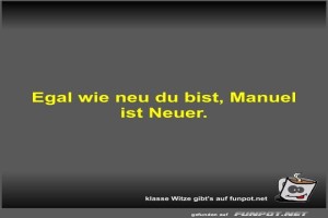 | Egal wie neu du bist, Manuel ist Neuer Bild (16.39 KB) 1Lustiges → klasse Sprüche und Witze | Lustiges → klasse Sprüche und Witze | 20.05.24-19:24 | Fossy | |