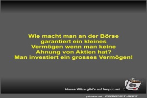 | Wie macht man an der Börse garantiert ein kleines Vermögen Bild (26.59 KB) 2Lustiges → klasse Sprüche und Witze | Lustiges → klasse Sprüche und Witze | 19.05.24-19:00 | Fossy | |