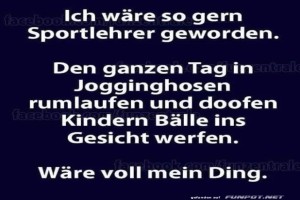 | Ich wäre gerne Sportlehrer Bild (47.02 KB) 3Lustiges → klasse Sprüche und Witze | Lustiges → klasse Sprüche und Witze | 20.05.24-12:48 | Nola | |