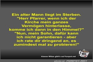 | Ein alter Mann liegt im Sterben Bild (43.92 KB) 2Lustiges → klasse Sprüche und Witze | Lustiges → klasse Sprüche und Witze | 19.05.24-14:22 | Fossy | |