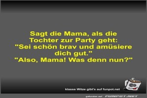 | Sagt die Mama, als die Tochter zur Party geht Bild (28.36 KB) 2Lustiges → klasse Sprüche und Witze | Lustiges → klasse Sprüche und Witze | 17.05.24-15:35 | Fossy | |