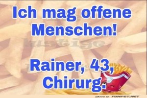 | Offene Menschen Bild (83.17 KB) 3Lustiges → klasse Sprüche und Witze | Lustiges → klasse Sprüche und Witze | 16.05.24-14:16 | ||