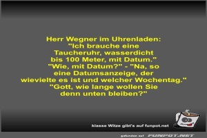| Herr Wegner im Uhrenladen Bild (35.27 KB) 4Lustiges → klasse Sprüche und Witze | Lustiges → klasse Sprüche und Witze | 09.05.24-18:58 | Fossy | |