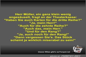| Herr Müller, ein ganz klein wenig angesäuselt, fragt an der Bild (43.61 KB) 1Lustiges → klasse Sprüche und Witze | Lustiges → klasse Sprüche und Witze | 10.05.24-16:32 | Fossy | |