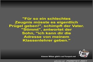 | Für so ein schlechtes Zeugnis müsste es eigentlich Prügel Bild (34.41 KB) 3Lustiges → klasse Sprüche und Witze | Lustiges → klasse Sprüche und Witze | 11.05.24-11:58 | Fossy | |