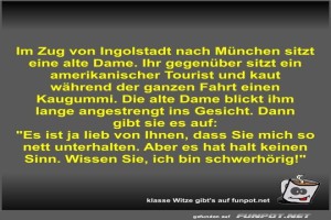 | Im Zug von Ingolstadt nach München sitzt eine alte Dame Bild (52.97 KB) 3Lustiges → klasse Sprüche und Witze | Lustiges → klasse Sprüche und Witze | 12.05.24-14:01 | Fossy | |